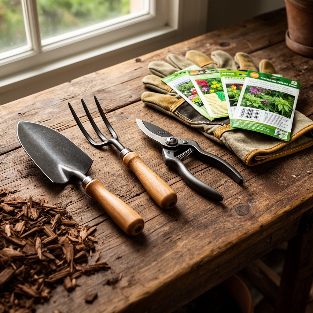 Gather a steel rake, wheelbarrow, landscape fabric pins if working on slopes steeper than 15 degrees, and a soil knife for edging. A 3-cubic-yard load covers approximately 300 square feet at 3 inches deep.